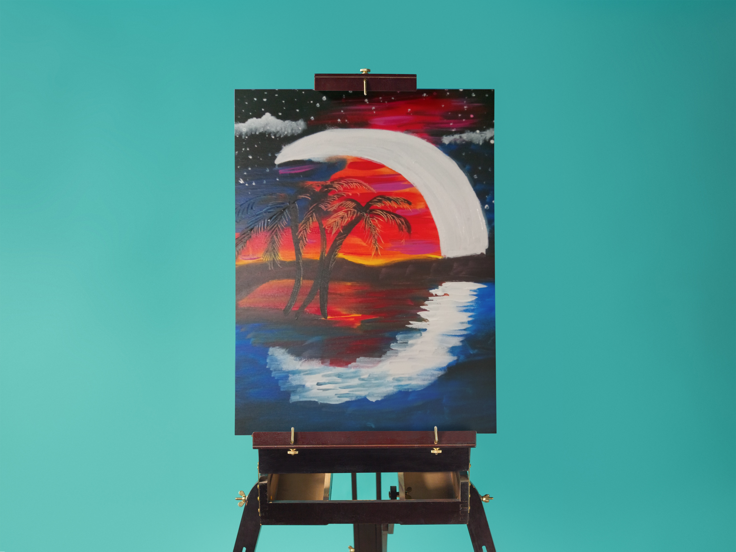 Instructional Pigment Night with Art past AmW @ Shakago's The concept painting for the evening will be as pictured below. Tickets much be purchased in advance to participate. $25/person The toll includes all supplies needed to recreate this painting, a complimentary beverage, and 1 free raffle ticket. Low-cal refreshments will be served. This will be on the 2nd floor of Shakago'southward. We will have total access to a the bar, and the grill will be open as well. Get your ticket today to secure your spot! I wait forward to creating with you lot.